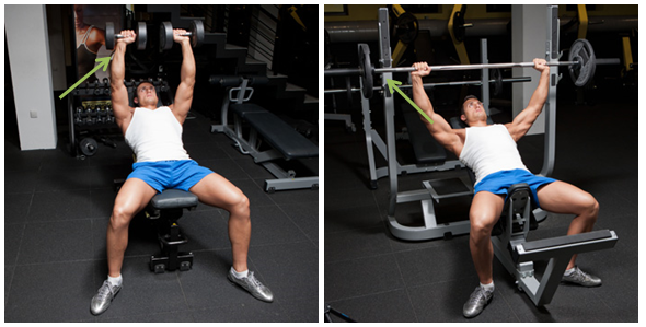 1. 啞鈴的運行距離比槓鈴的來的遠。運行距離越長,表示練到的肌肉範圍越廣。