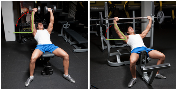 槓鈴臥推時手臂會稍微地向外側推出,如此會帶離施於胸肌的作用力和壓力。