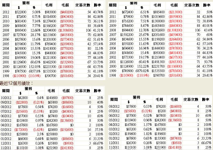 (法意團隊可以麻煩澄清一下2012/3的回測結果到底是賺錢還是賠錢嗎?)